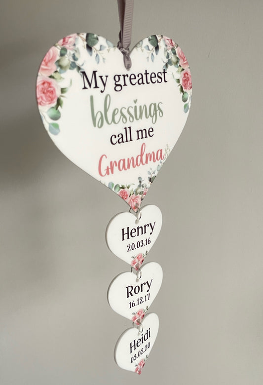 Greatest Blessings Floral Personalised Hanging Heart Plaque