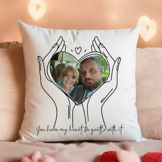 Couples Heart Holding Photo Cushion | Anniversary Gift