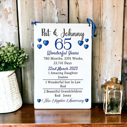 Sapphire Wedding Anniversary Gift | 45th Wedding Anniversary Plaque