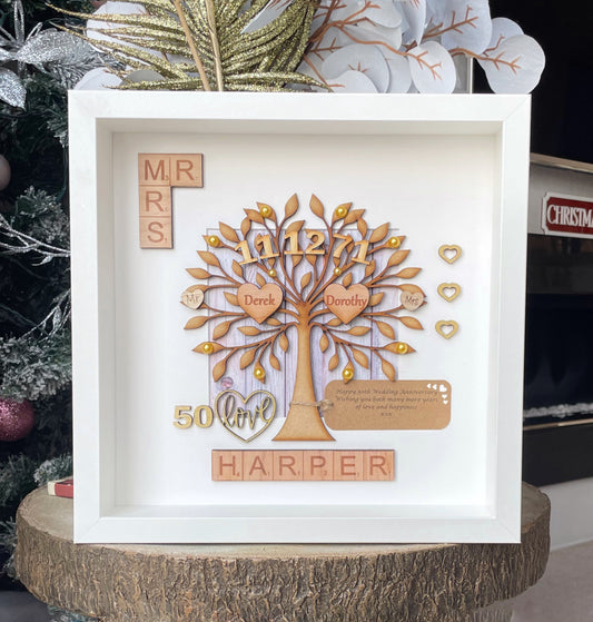 Golden Wedding Anniversary 50th Gift Scrabble Tree Frame